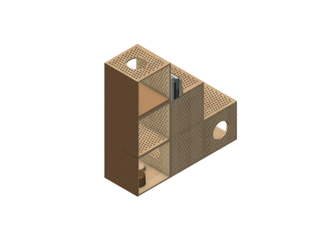 Design for Joyinstar, China BLOXX is a modular scratching system combining functionality, flexibility, and flat-pack efficiency for small living environments.